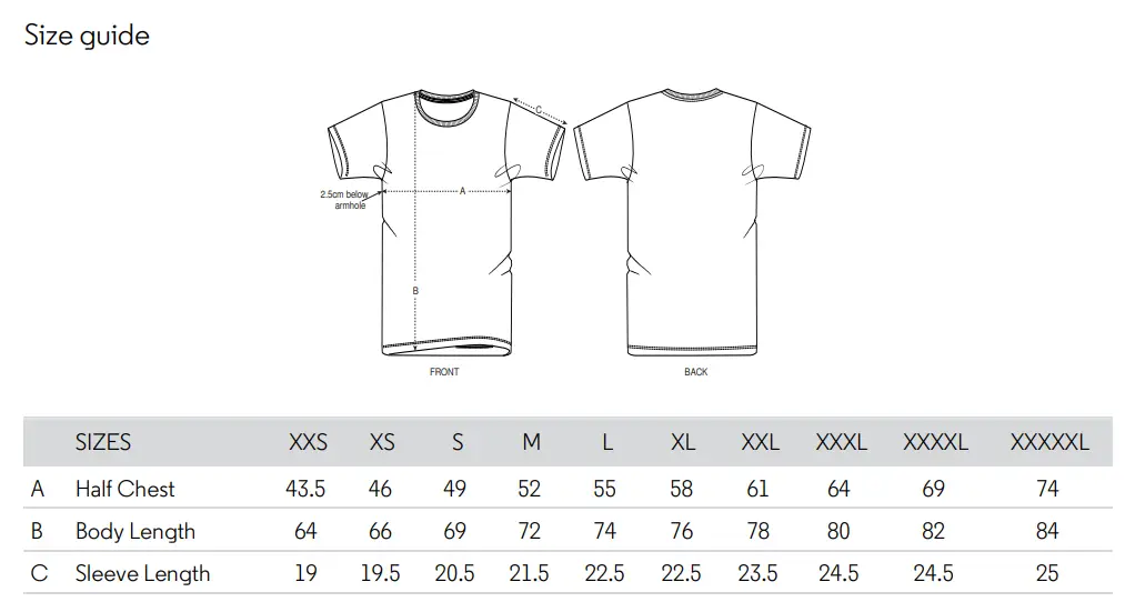 Para elegir tu talla perfecta mide una de tus camiseta favoritas y compárala con la tabla de tallas aquí.